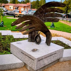 Nivalan muistolehdon patsaan on suunnitellut nivalalainen taiteilija ja opettaja Riitta Latvala-Erkkilä. Kuva: Ritva Oja